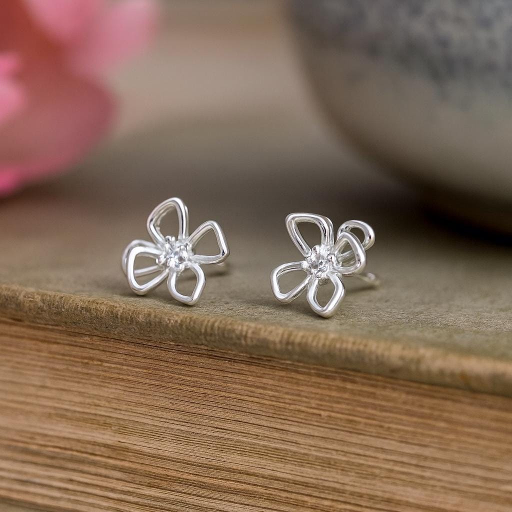 Add a touch of elegance and sparkle to your everyday look with these stunning sterling silver flower petal stud earrings. Beautifully crafted from high-quality 925 sterling silver, each earring features delicately shaped petals surrounding a brilliant cubic zirconia centre, creating a timeless floral design that’s both feminine and refined.