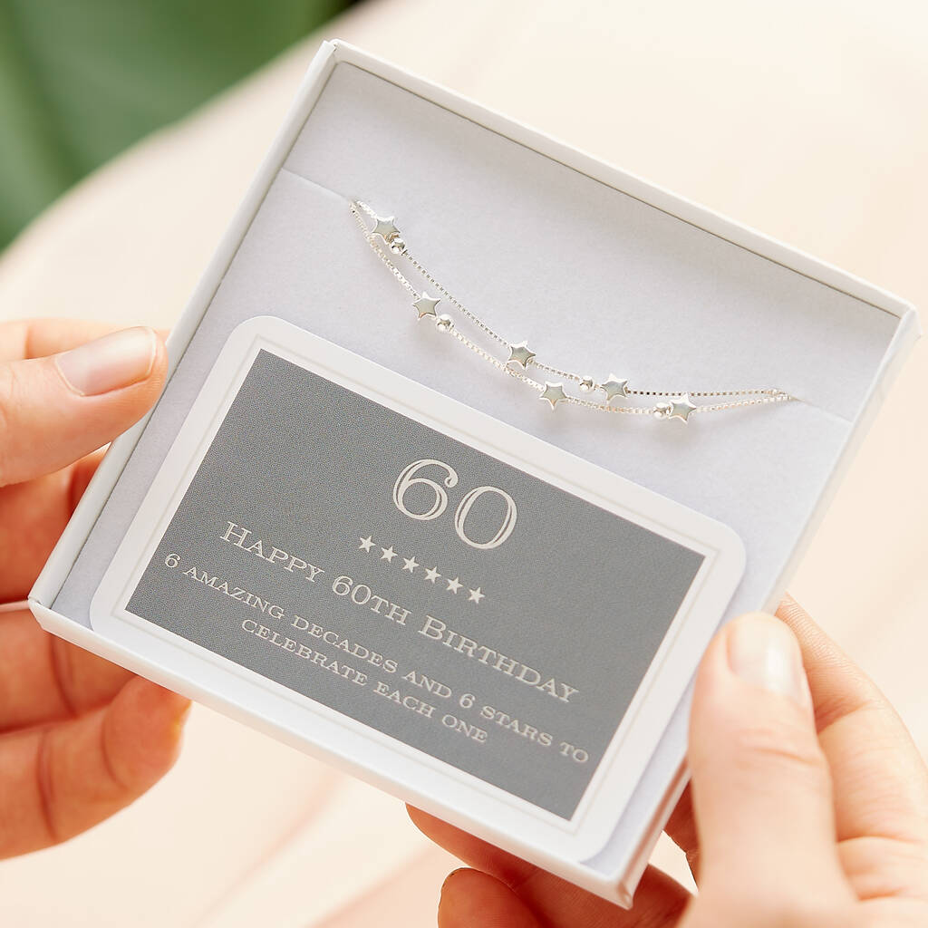 A gorgeous solid sterling silver star bracelet that makes the perfect 60th birthday gift.