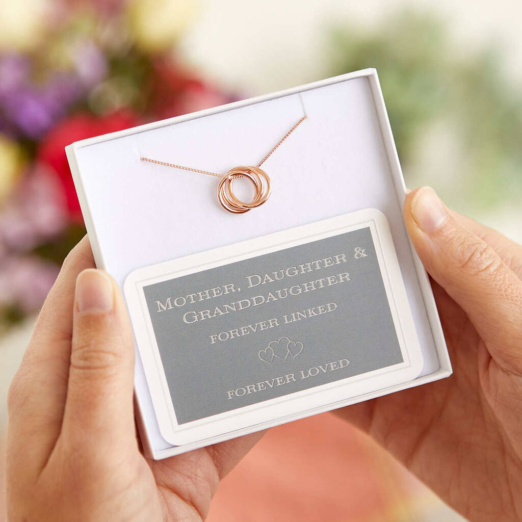 Each ring symbolizes the enduring connection between Mother, Daughter, and Granddaughter, making it a perfect and meaningful gift.